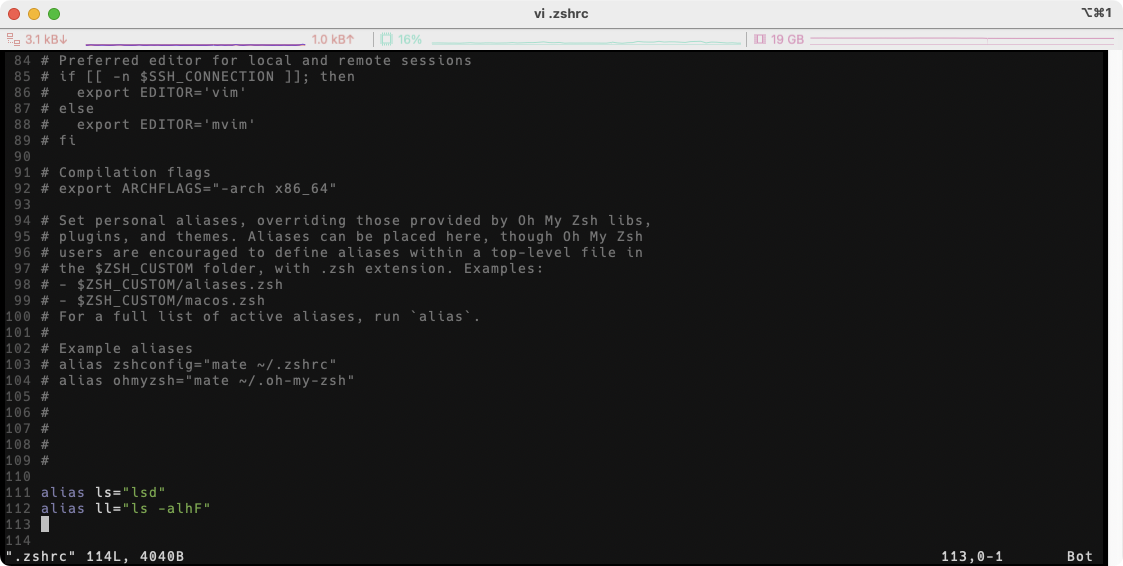 vi .zshrc